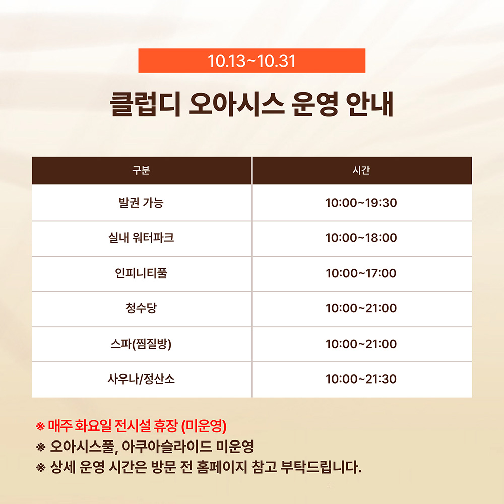 11월 1일~11월 30일까지 입장가능(11/3~11 입장불가) / 통합권[워터파크/스파&찜질]